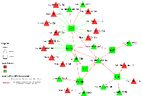 Cytoscape and the plugin KEGGscape were used to visualize the data [34]. We visualized all molecules involved in miRNA-mRNA interactions and mRNAs that were significantly differentially expressed with a FC >1.5 or <0.67 in overall CRC, rather than for microsatellite stable (MSS) or unstable (MSI) tumors only.